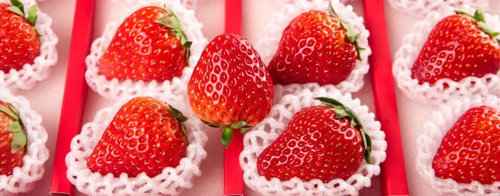 A single strawberry shouldn’t cost more than your lunch. Yet Japanese strawberries are commanding premium prices – sometimes $50 or more per piece – and experiencing explosive 28% year-over-year growth with over 23 million social media posts. These aren’t your supermarket strawberries. They’re luxury fruits bred for perfection, prized for their appearance and sweetness, and increasingly showing up in everything from minimalist desserts to layered cakes across the Western world.